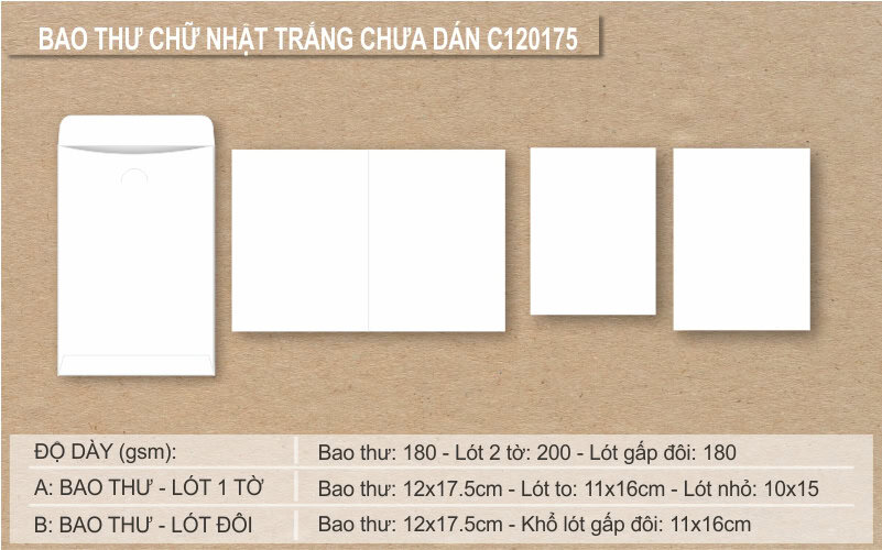 – Quý khách có hai tùy chọn cho Mẫu Phôi thiệp cưới trắng này: hoặc chọn Bao thư + lót gấp đôi, hoặc chọn Bao thư + lót 2 tờ lớn nhỏ